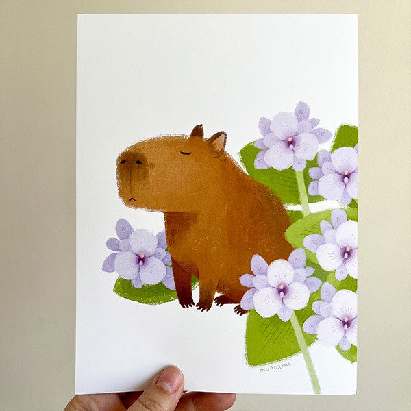 Carpincho (hydrochoerus hydrochaeris) y aguapé (eichhornia azurea).