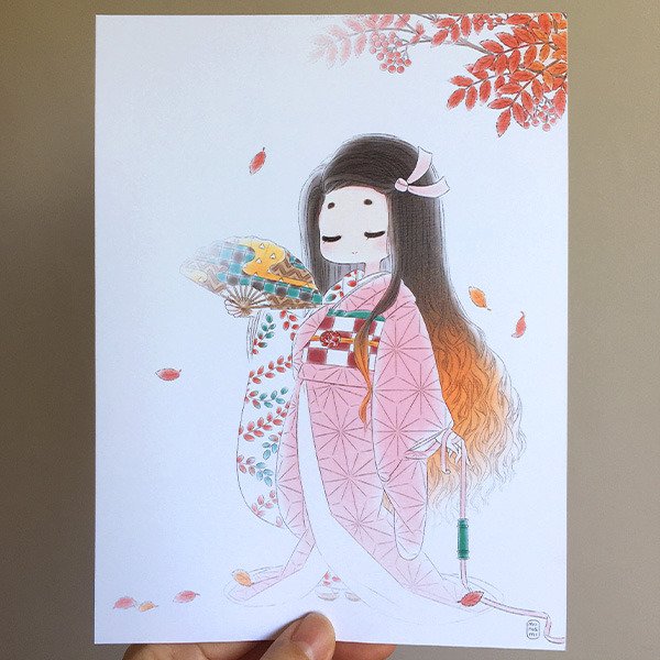 Nezuko con kimono tradicional formal tipo hikizuri.