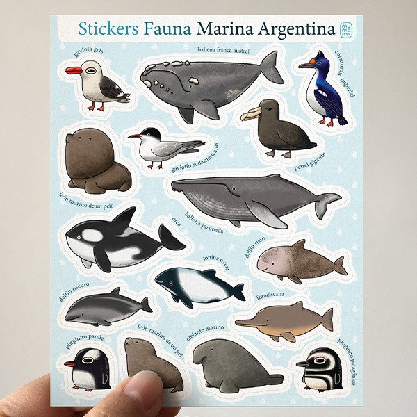 Stickers en plancha de fauna marina argentina.