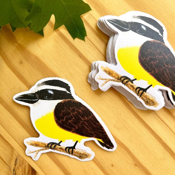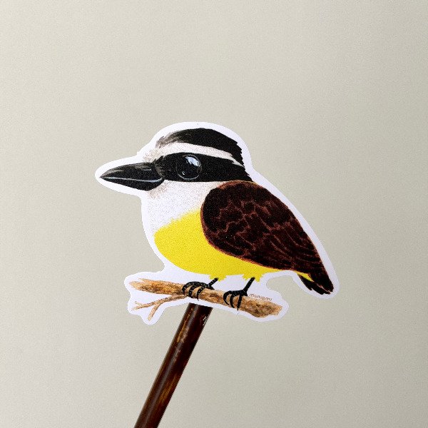 Sticker vinilo de benteveo (pitangus sulphuratus) ideando planes maquiavélicos.