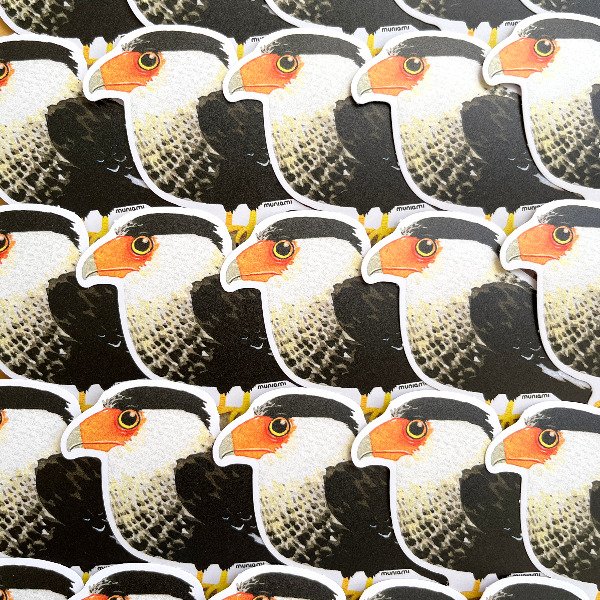 Sticker vinilo de carancho (caracara plancus) que ha visto cosas a través de las ventanas de los edificios de la ciudad.